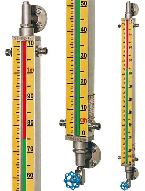 兩端采用三通法連接,無安全裝置。由于口徑為20mm,可測(cè)量較粘稠介質(zhì)的液位;測(cè)量范圍與顯示高度同等。