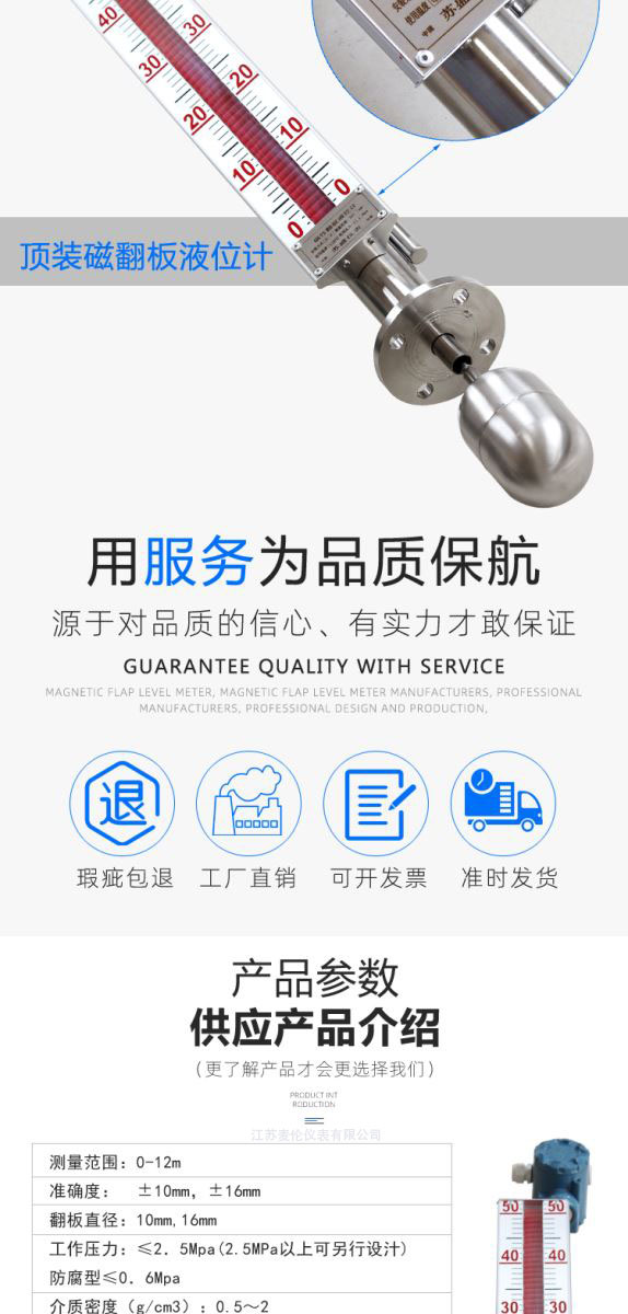 磁翻板液位計作為一種使用頻率*高的液位計,那么這種液位計的種類究竟有哪些呢?今天就讓小編給大家介紹一下,如何來正確的選擇適合的磁翻板液位計。磁翻板液位計是一種機(jī)械式的液位計,它的測量原理其實(shí)是非常簡單的,就是根據(jù)的密度做出相應(yīng)大小的浮球,來上下浮動,連接外面的翻板箱,來實(shí)現(xiàn)在現(xiàn)場觀察到準(zhǔn)確液位的目的。