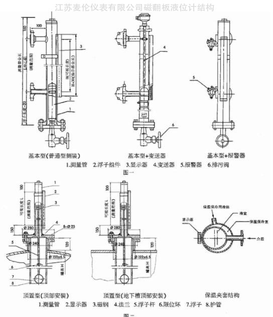 磁翻板液位計的工作原理;磁翻板液位計以磁浮子為傳感元件,根據(jù)浮力原理和磁耦合制成,如圖1所示。可通過磁性翻板直接觀察容器內(nèi)液位的實際高度。測量管中的浮子隨測量液位的變化而變化。當被測容器中的液位上升和下降時,液位計本體管中的磁浮子也會上升和下降。浮子中的***磁鋼通過磁耦合傳輸?shù)酱欧逯甘酒?,當液位下降時,驅動紅,白色翻板轉動180°,翻板由紅色變?yōu)榘咨.斠何簧邥r,活門從白色變?yōu)榧t色。容器內(nèi)液位的實際高度為指示器的紅白交界處,以實