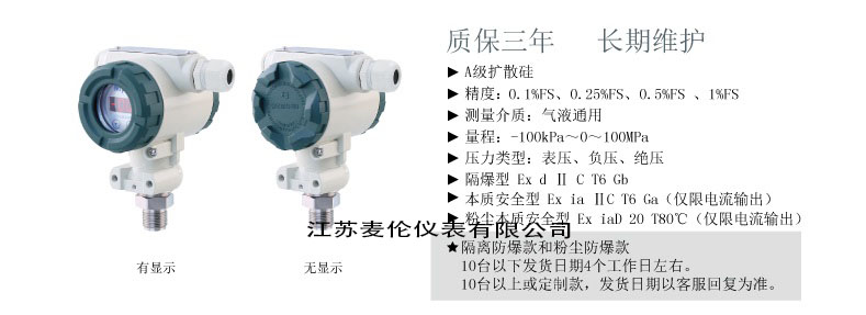 壓力變送器由傳感器發(fā)展而來,是一種輸出標準信號的傳感器。它是一種將壓力變量轉(zhuǎn)換為可傳輸?shù)臉藴驶敵鲂盘柕膬x器。輸出信號和壓力變量之間存在給定的連續(xù)函數(shù)關(guān)系,通常為線性函數(shù).