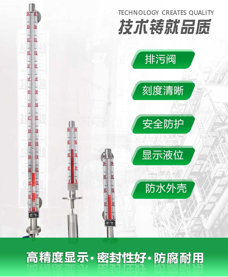 特點(diǎn)。浮球作為測(cè)量元件,磁鐵驅(qū)動(dòng)柱顯示,無(wú)能量。具有上、下限位開(kāi)關(guān)輸出,可實(shí)現(xiàn)遠(yuǎn)程報(bào)警、限位控制。配備變送器可實(shí)現(xiàn)液位遠(yuǎn)距離指示、檢測(cè)和控制。