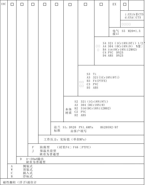 JSML-UHZ系列磁柱(浮子)液位計(jì)的分類(lèi)和命名。