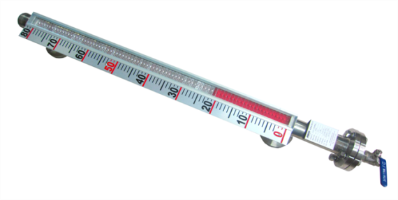 磁翻板液位計一般安裝在容器外側(cè)或頂部,即其安裝方式可選擇側(cè)裝或者頂裝。對于封閉式的容器而言,可根據(jù)現(xiàn)場需求加裝排污閥。磁翻板液位計的測量主管一般采用無縫鋼管,且連接管處采用無縫焊接,使其密封性大大增強(qiáng),十分適合用于高溫、高壓、耐腐蝕,甚至危險場合的測量。磁翻板液位計的面板具有度數(shù)直觀、醒目、可視角寬等特點(diǎn),其結(jié)構(gòu)緊湊合理、安全可靠,無“跑、冒、滴、漏”等現(xiàn)象,還具有維護(hù)簡便、維護(hù)成本低等優(yōu)點(diǎn)。磁翻板液位計所具有的指示功能無須額外供電,即當(dāng)電力供應(yīng)發(fā)生故障時,也絲毫不會對其工作效果產(chǎn)生影響,可謂經(jīng)濟(jì)環(huán)保的理想型液位檢測儀表??稍跍y量主管上加裝磁開關(guān),使其輸出開關(guān)信號或模擬量信號,更加便于控制液位高度。磁翻板液位計有側(cè)裝和頂裝兩種安裝方式,無論哪種方式都可以配置干簧管遠(yuǎn)傳變送器及磁開關(guān),由此達(dá)到液位計遠(yuǎn)距離傳輸,及實(shí)時就地顯示、監(jiān)控的效果,測量方便快捷,大大提高作業(yè)效率。與磁開關(guān)和干簧管遠(yuǎn)傳變送器配套使用的磁翻板液位計又被稱為遠(yuǎn)傳型磁翻板液位計。