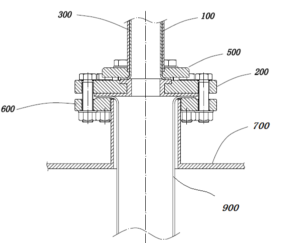 但受限于浮筒形狀、尺寸以及內(nèi)襯材料的尺寸和特性影響,該翻折部的翻邊密封面無法做到很大,加上容器開口通常是大于該翻折部所覆蓋的區(qū)域,因此造成了容器開口與翻折部以外的金屬面(如法蘭的表面)相通,從而容易導致這些金屬面受腐蝕,極易造成生產(chǎn)安全事故,給生產(chǎn)帶來麻煩。
